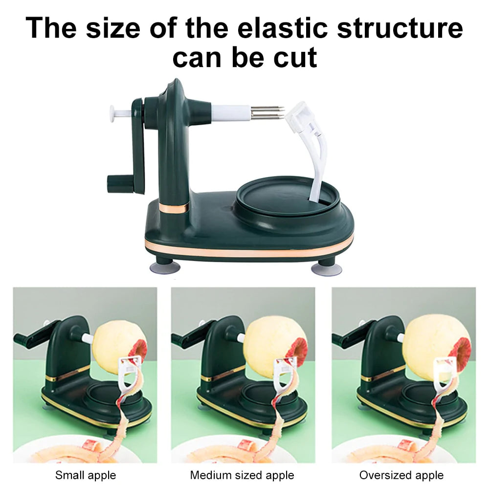 Quickly and easily peel, core and slice any apple variety. Flexible swing of the blade accommodates variety of apple size, blade cuts a wider peel than the more usual sort of metal peelers making it faster. Peel is thinner, hardly any apple meat coming off comparing with motorized peelers which lose a ton of fruit. Comes with a Slicer and Corer to serve sliced apples or prepare apple pies, with 4 welding points on each blade highly attached on the central corer ring, enables a stronger and more durable daily using. The suction cups held the peeler in place steadily, effortlessly use for aging hands that are not as flexible, works easily for kids as well.